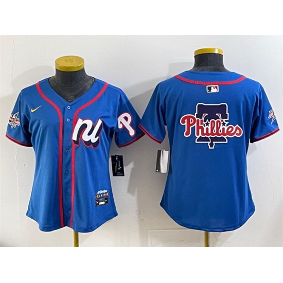 Home>MLB>MLB 2025 All Star>Women Jerseys>Women National League Philadelphia Phillies Team Big Logo Blue 2025 All Star Edition Limited Stitched Baseball Jersey
