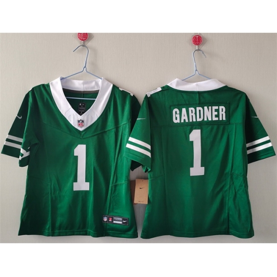 - Women New York Jets 1 Sauce Gardner Green 2024 FU S E Vapor Stitched Football Jersey
