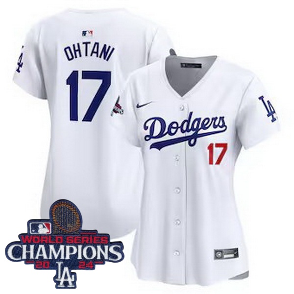 Home>MLB>2024 World Series Champions>Women>Women Nike Los Angeles Dodgers Shohei Ohtani #17 White Flex Base 2024 World Series Champions Stitched MLB Jersey