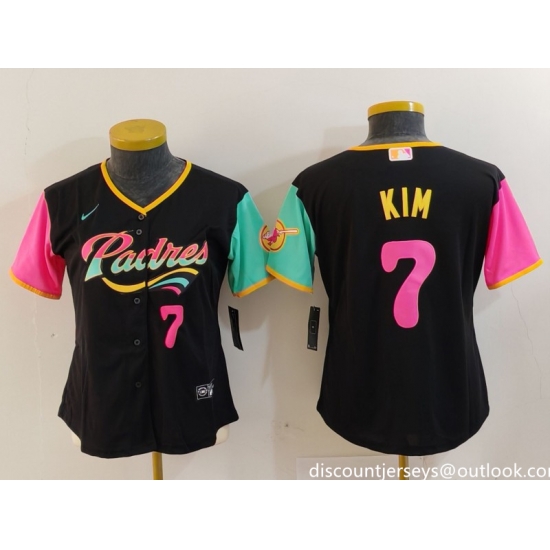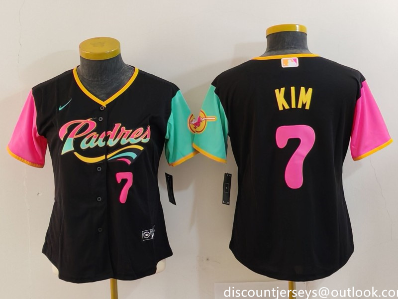 - Women San Diego Padres 7 Ha Seong Kim White Stitched Brown1 Jersey