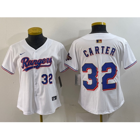 - Women Texas Rangers 32 Evan Carter White 2024 Gold Collection Stitched Baseball Jersey
