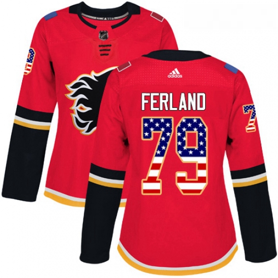 - Womens Adidas Calgary Flames 79 Michael Ferland Authentic Red USA Flag Fashion NHL Jersey