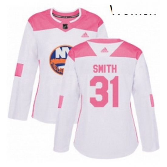 - Womens Adidas New York Islanders 44 Calvin de Haan Authentic WhitePink Fashion NHL Jersey