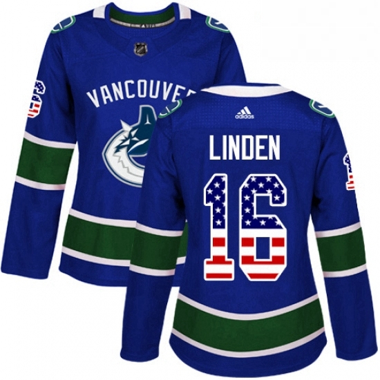 - Womens Adidas Vancouver Canucks 16 Trevor Linden Authentic Blue Home NHL Jersey