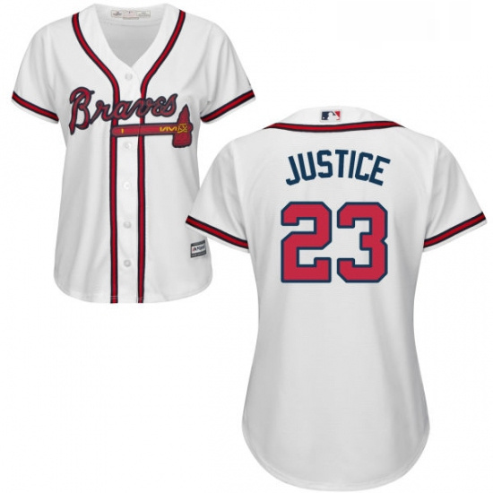 - Womens Majestic Atlanta Braves 23 David Justice Replica White Home Cool Base MLB Jersey