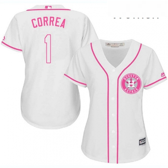 - Womens Majestic Houston Astros 1 Carlos Correa Replica White Home Cool Base MLB Jersey