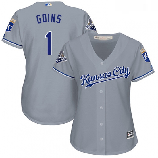 - Womens Majestic Kansas City Royals 1 Ryan Goins Replica Blue Alternate 2 Cool Base MLB Jersey