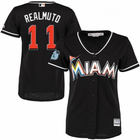 - Womens Majestic Miami Marlins 11 J T Realmuto Authentic White Fashion Cool Base MLB Jersey