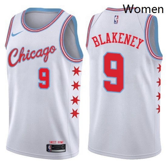 - Womens Nike Chicago Bulls 9 Antonio Blakeney Swingman White Pink Fashion NBA Jersey