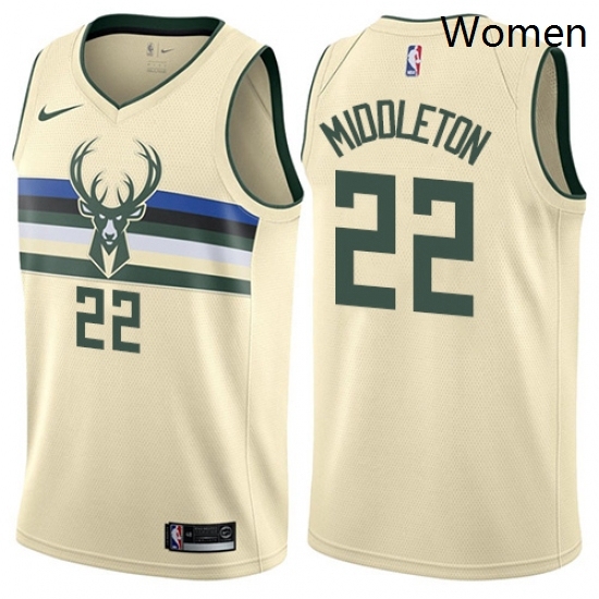 - Womens Nike Milwaukee Bucks 22 Khris Middleton Swingman Cream NBA Jersey City Edition
