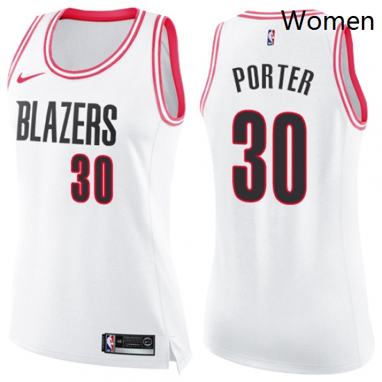 - Womens Nike Portland Trail Blazers 50 Caleb Swanigan Swingman WhitePink Fashion NBA Jersey