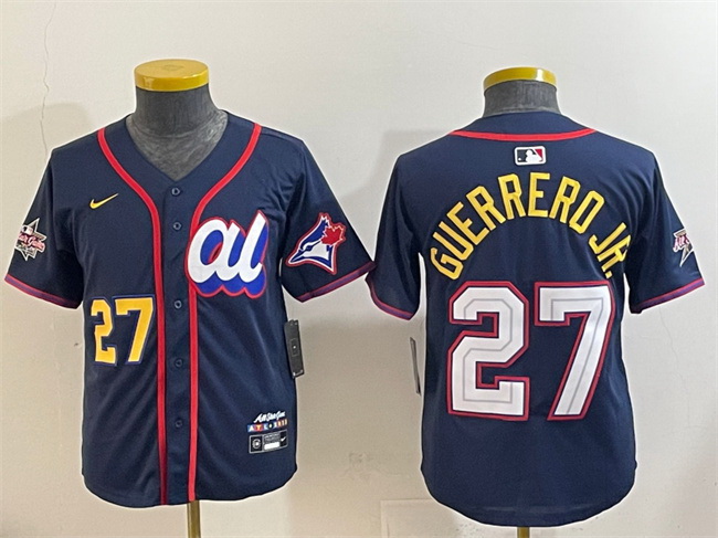 Home>MLB>MLB 2025 All Star>Youth Jerseys>Youth American League 27 Vladimir Guerrero Jr Navy 2025 All Star Edition Limited Stitched Baseball Jersey