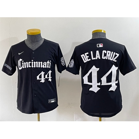 - Youth Cincinnati Reds 77 Rece Hinds Black 2023 City Connect Stitched Baseball Jersey 1