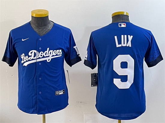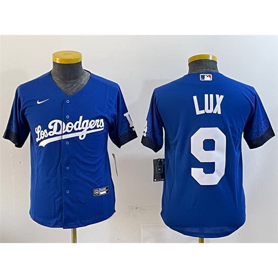 - Youth Los Angeles Dodgers 9 Gavin Lux Gray 2020 World Series Champions Replica Jersey