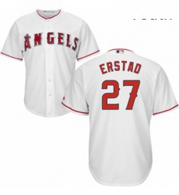 Home>MLB>Los Angeles Angels>Youth>Youth Majestic Los Angeles Angels of Anaheim 27 Darin Erstad Authentic White Home Cool Base MLB Jersey