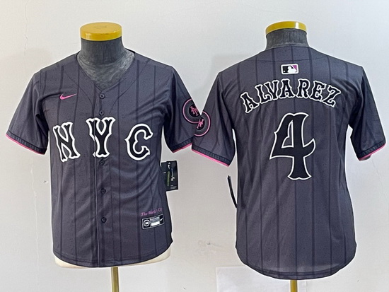 - Youth New York Mets Team Big Logo Black Cool Base Stitched Baseball Jersey 1