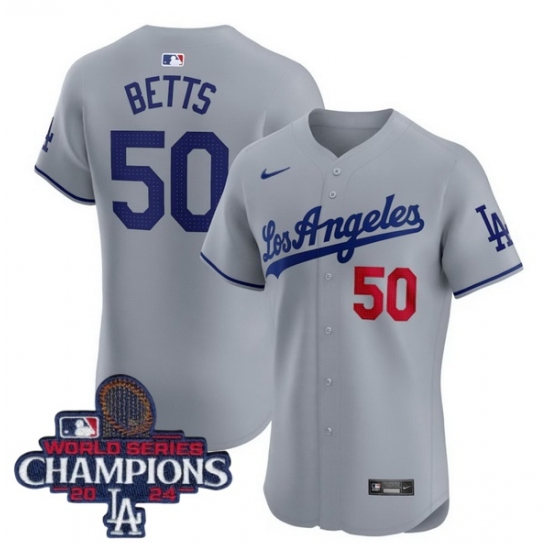 Home>MLB>2024 World Series Champions>Youth>Youth Nike Los Angeles Dodgers Mookie Betts #50 Gray Flex Base 2024 World Series Champions Stitched MLB Jersey