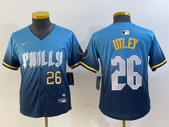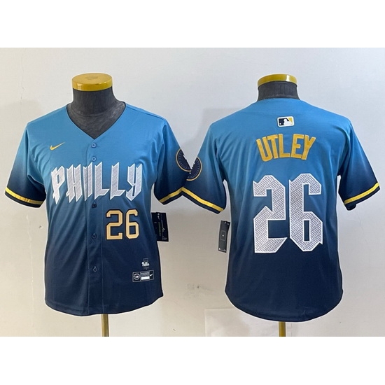 - Youth Philadelphia Phillies 7 Trea Turner Blue 2024 City Connect Limited Stitched Jersey 4