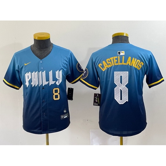 - Youth Philadelphia Phillies Team Big Logo Blue Cool Base Stitched Baseball Jersey