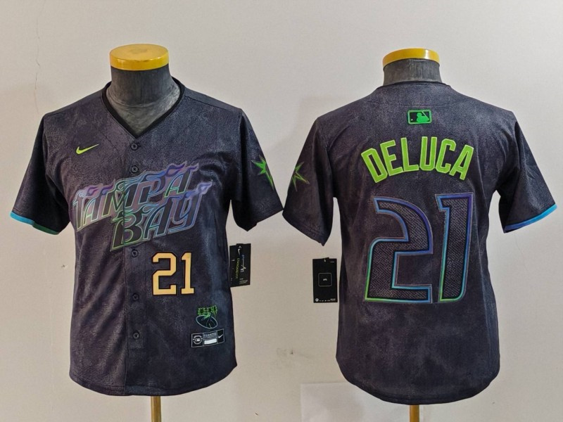 - Youth Tampa Bay Rays 18 Shane McClanahan Charcoal 2024 City Connect Limited jerseys 3