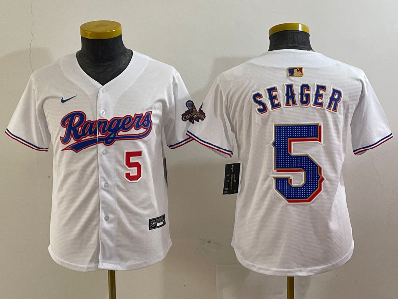 - Youth Texas Rangers Team Big Logo White Gold Stitched Baseball Jersey 2