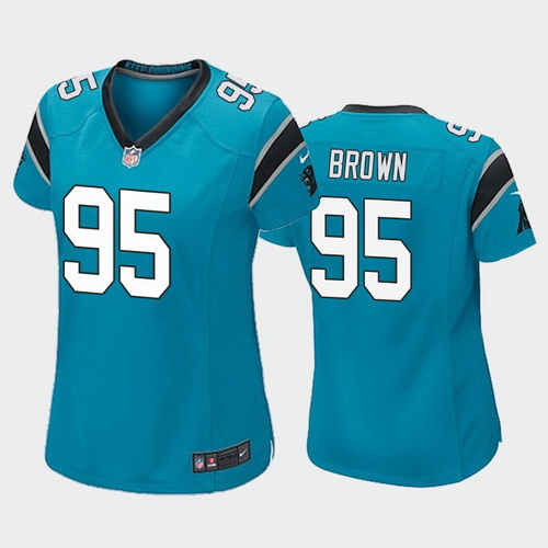 - Nike Panthers #92 Dwan Edwards Blue Team Color Women Stitched NFL Jersey